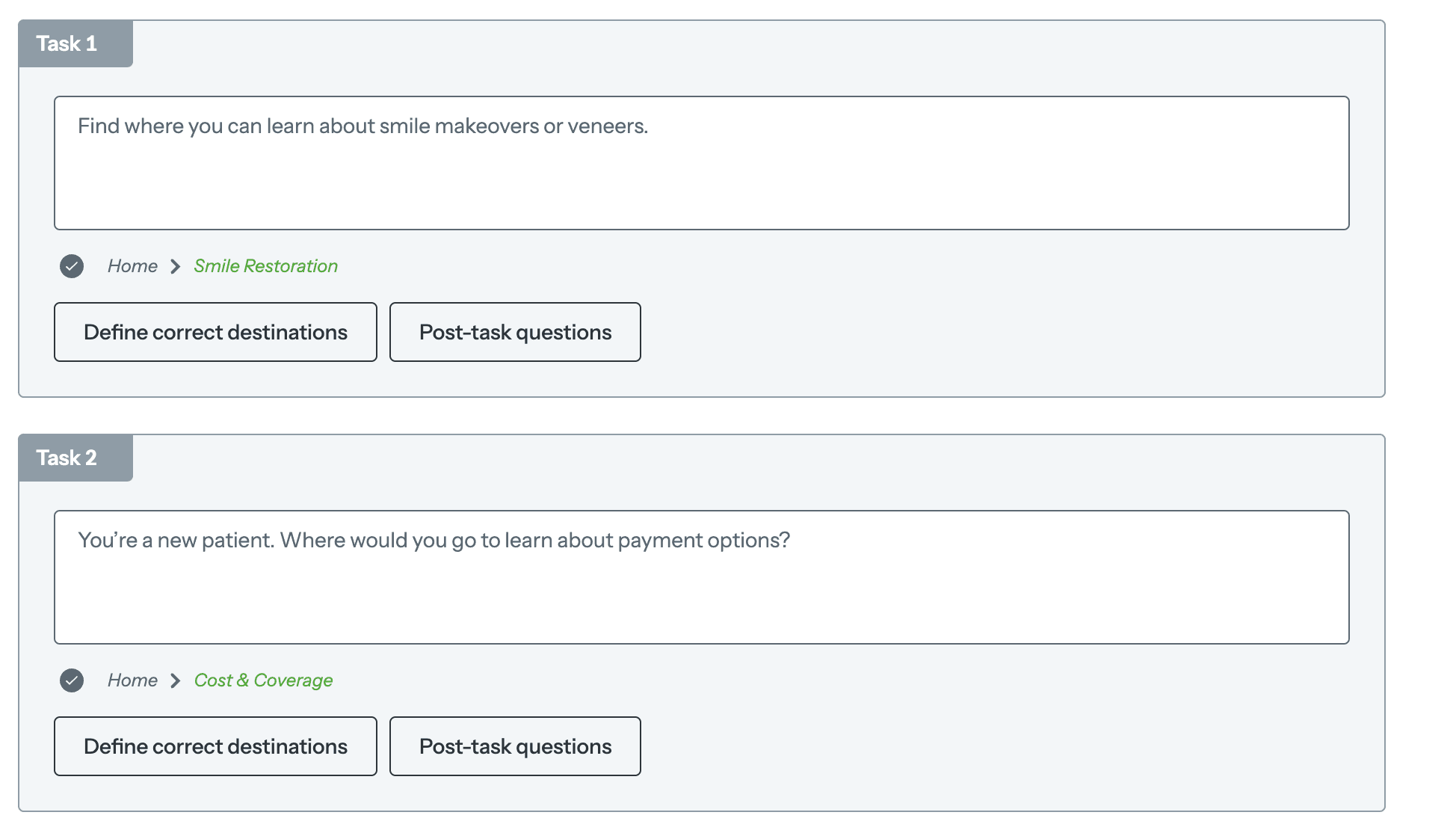 I knew that our dental clinic site's navigation was unconventional which led me to conduct a tree test using Optimal Workshop. The goal was to validate the clarity and effectiveness of our site's navigation structure, ensuring that patients can easily locate critical information such as aesthetic restorative treatments, general dentistry, pricing details, and our clinic's background.